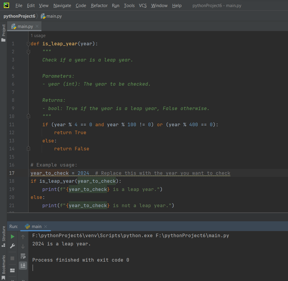 year_to_checkis a leap year or not based on the result of theis_leap_yearfunction.